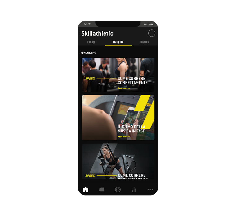Ogni elemento digitale è stato progettato per rispondere alla necessità di poter rendere fruibile un contenuto in momenti di comunicazione differenti e in “canali” molto diversi tra loro, dall’app, al sito web, ai grandi schermi che guidano l’allenamento stesso.