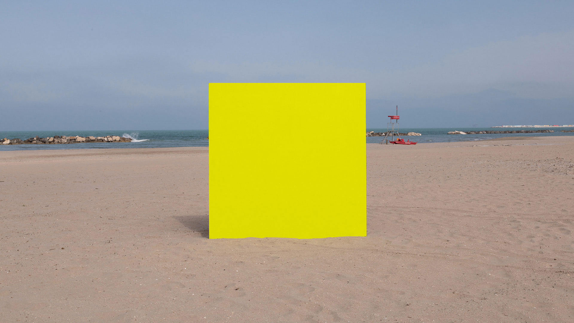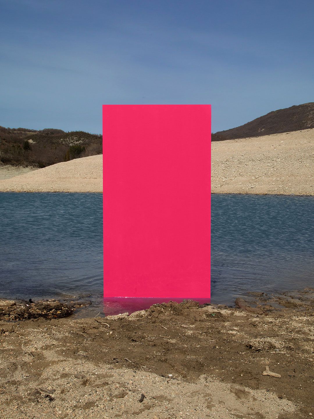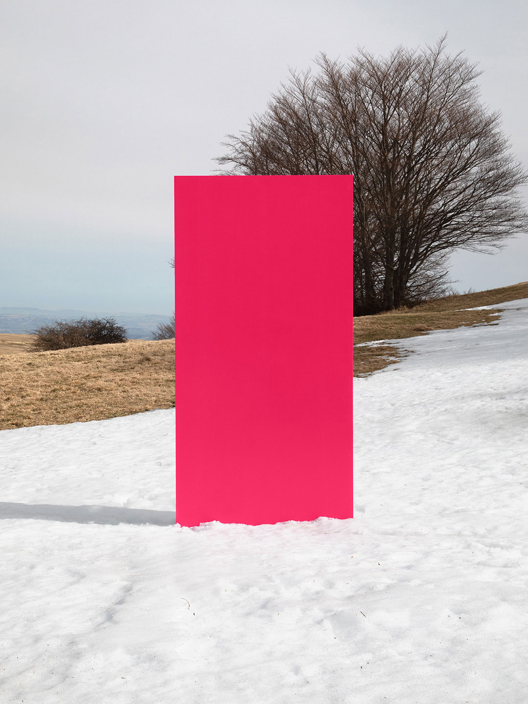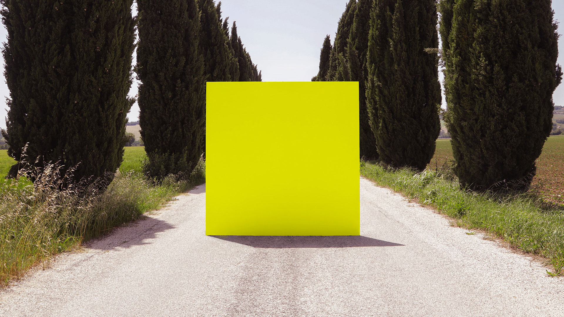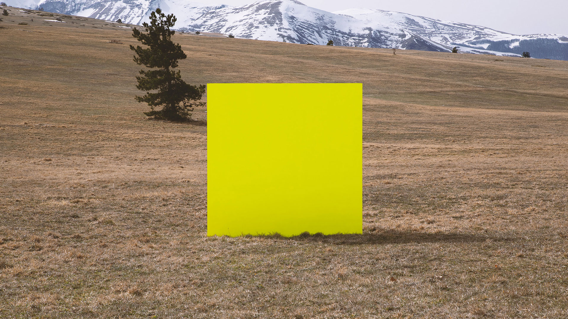 Nella campagna fotografica l’elemento geometrico monocolore è stato fotografato in paesaggi caratterizzanti della geografia del luogo: montagne, boschi, colline, distese di grano o spiagge, e l’elemento, sempre posizionato centralmente, costituisce una barriera per il godimento del paesaggio intralciandone la visione; questa scelta è scaturita dall’esasperazione del claim del festival ‘you can’t download the experience’, invitando l’utente a vivere di persona il contesto, non limitandosi ad usufruirne esclusivamente attraverso i media.