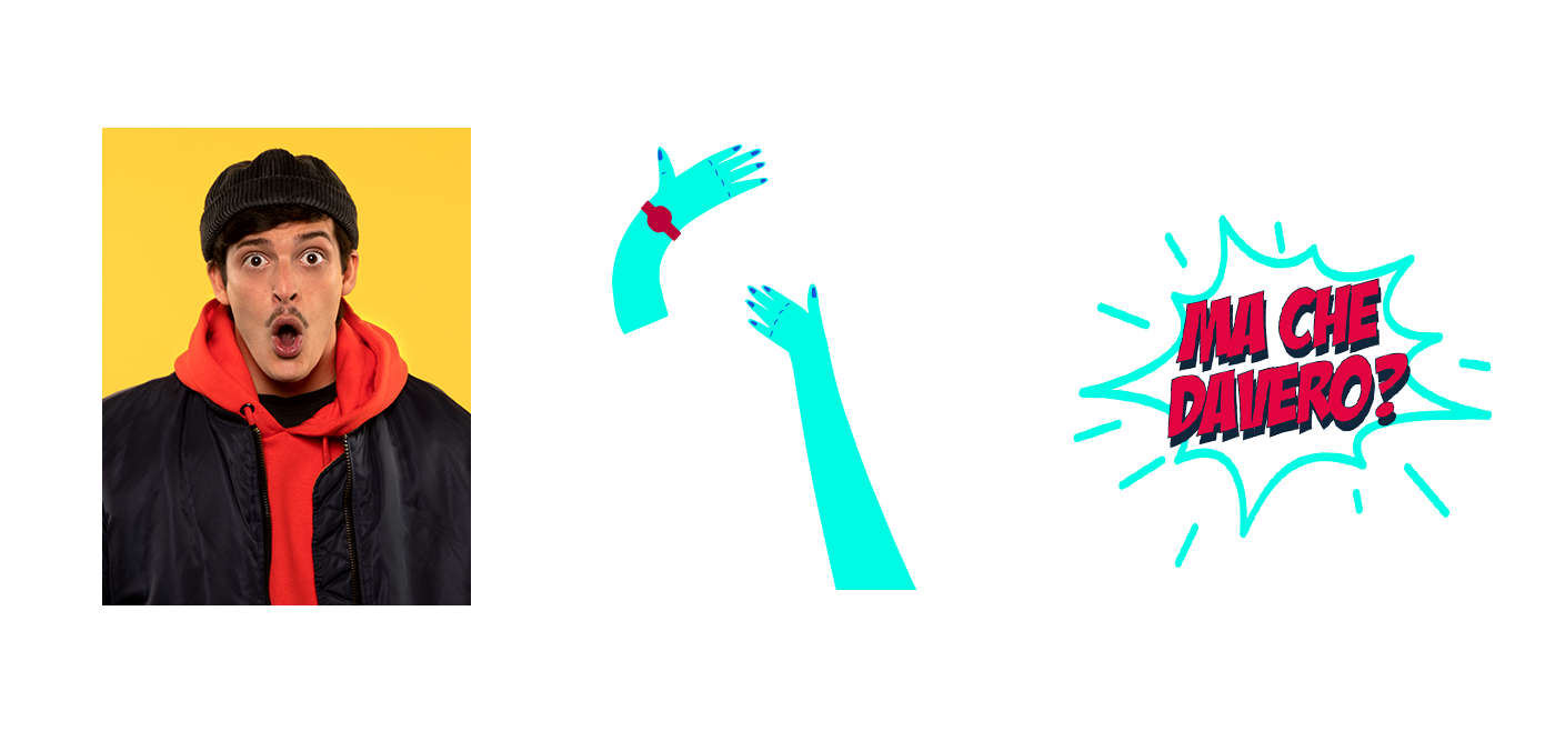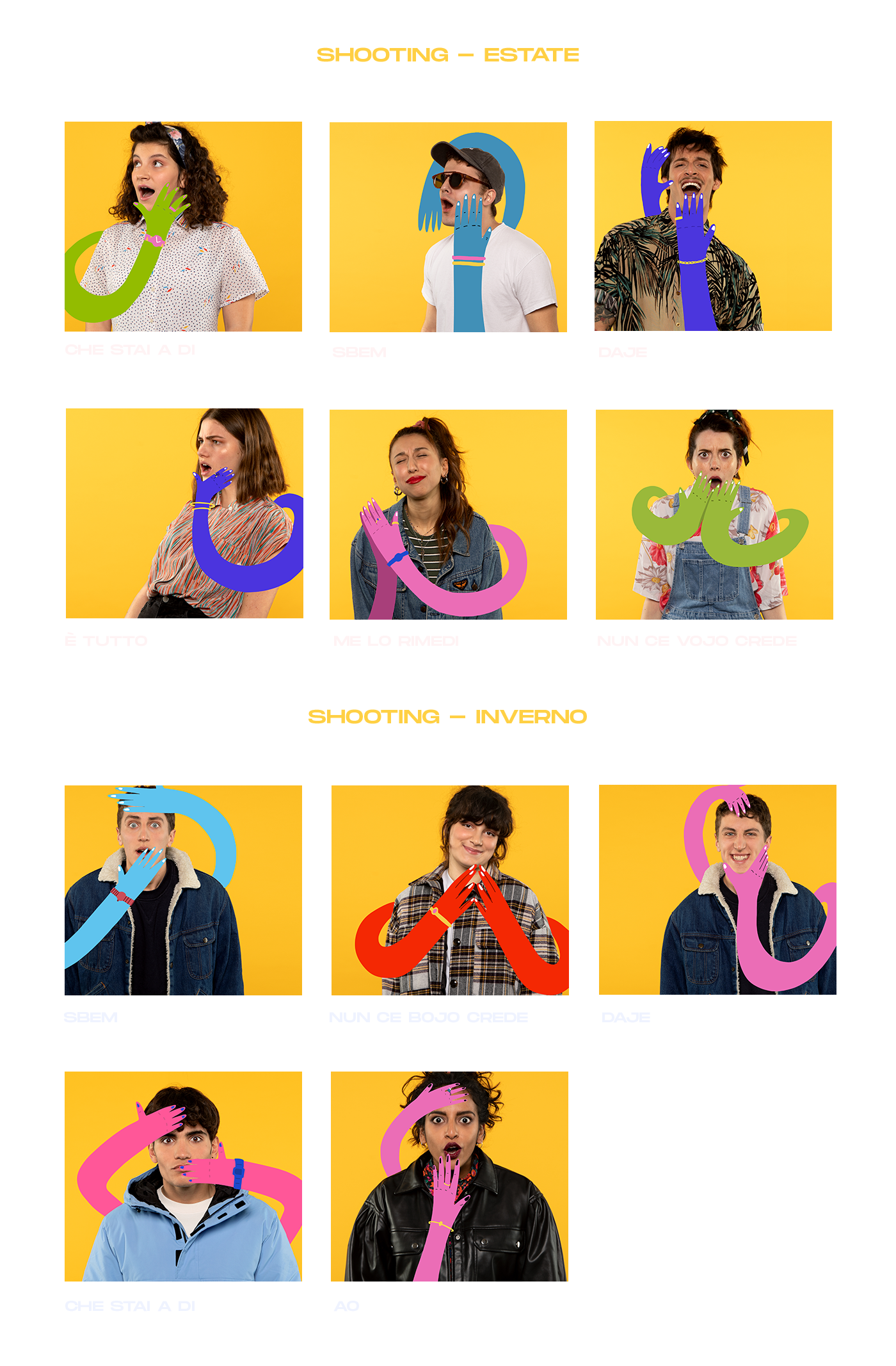 L’idea si ispira al linguaggio veloce, colorato della pop art. I protagonisti sono stati fotografati in primo piano. I loro volti, reagiscono, proprio come un una vignetta POP, alla notizia della promozione. la reazione sarà sottolineata dalla gestualità di mani illustrate secondo lo stile.