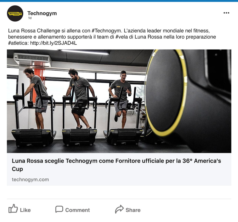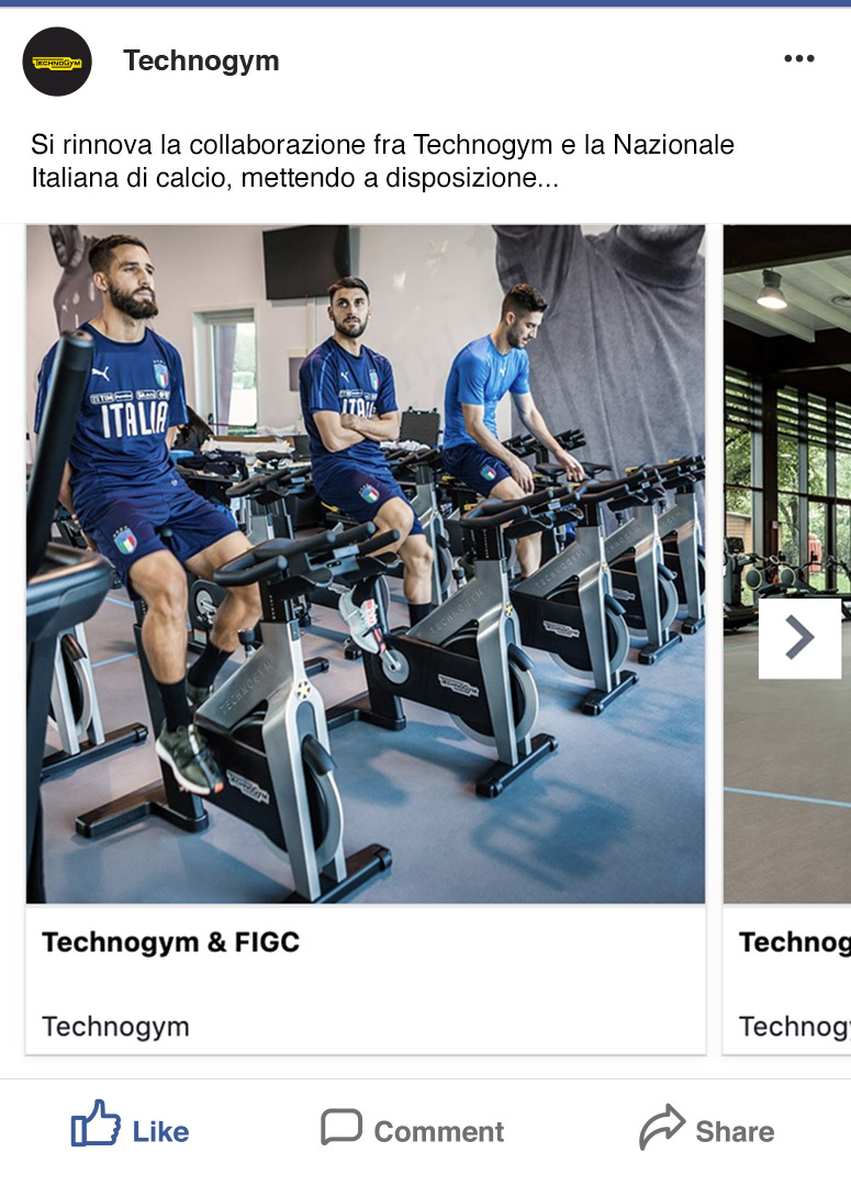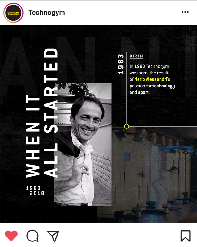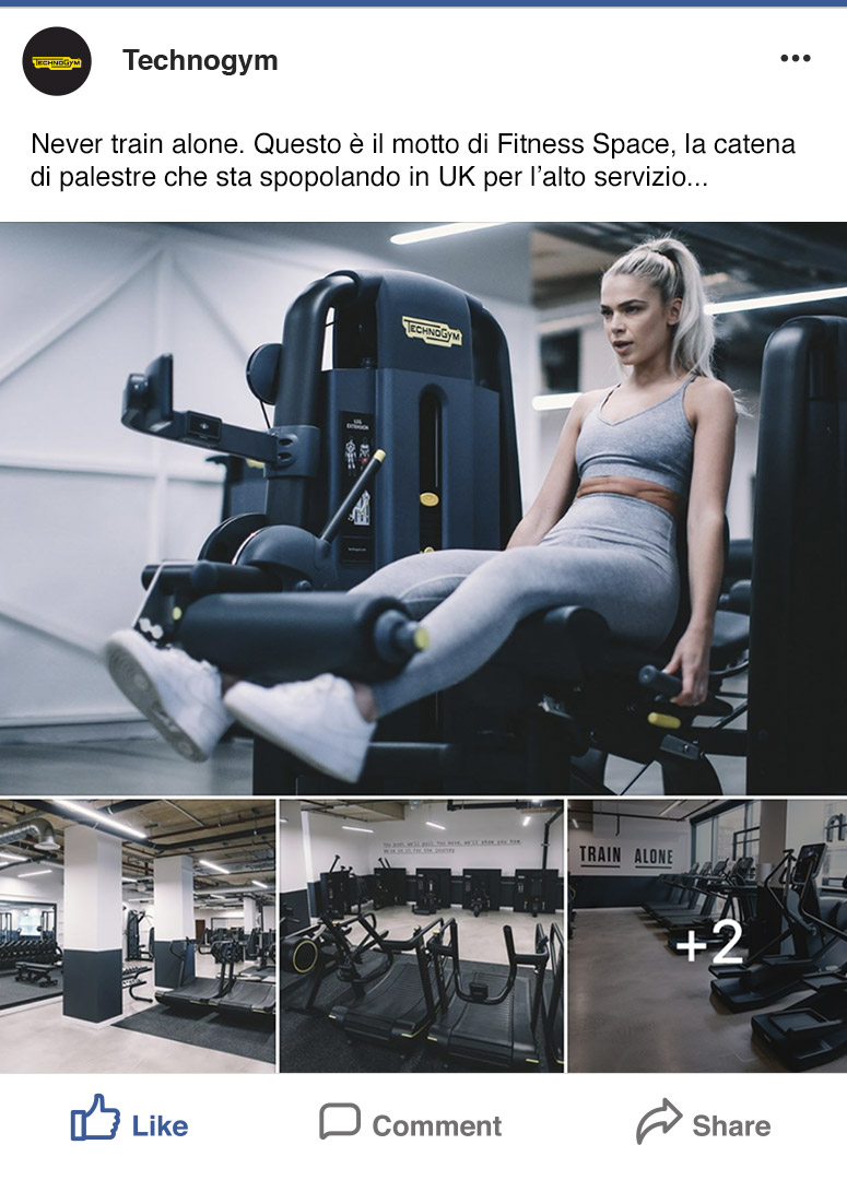 Da novembre 2017 ci occupiamo dei contenuti per i social network Technogym. Il nostro percorso è iniziato con una fan base di 63.000 follower oggi in crescita costante.